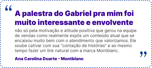 Todas as palestras de Gabriel Villarreal são customizadas de acordo com o evento, tipo de público e segmento de mercado de cada empresa. Com base nisto, os conteúdos são selecionados de forma a gerar o máximo de conexão com o público.